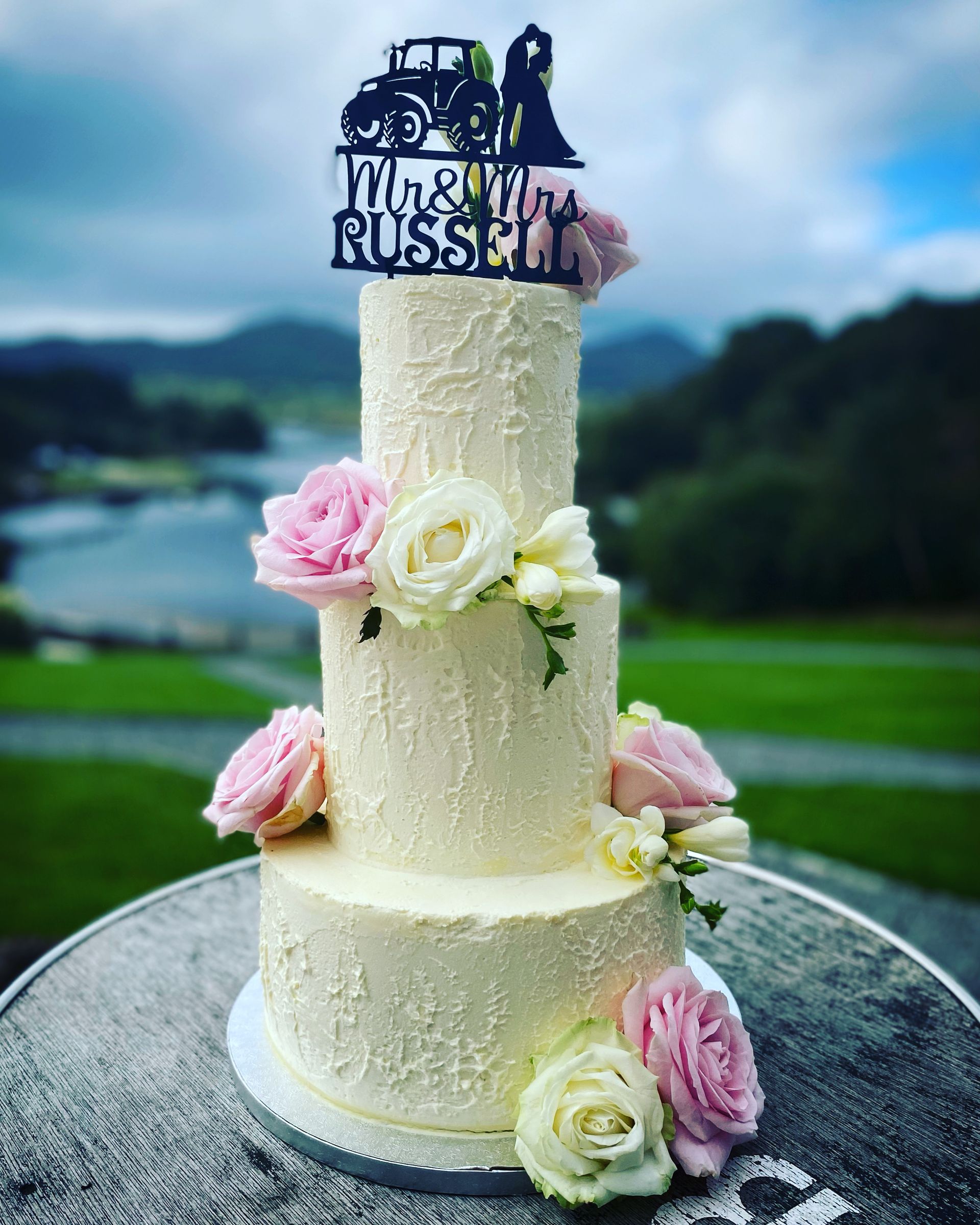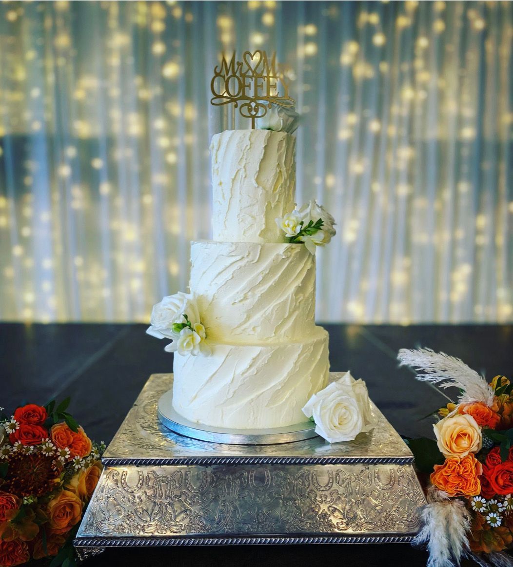 The colour of buttercream, cake flowers and topper design can be changed as required. Also the designs can be made as one or two tier versions also.